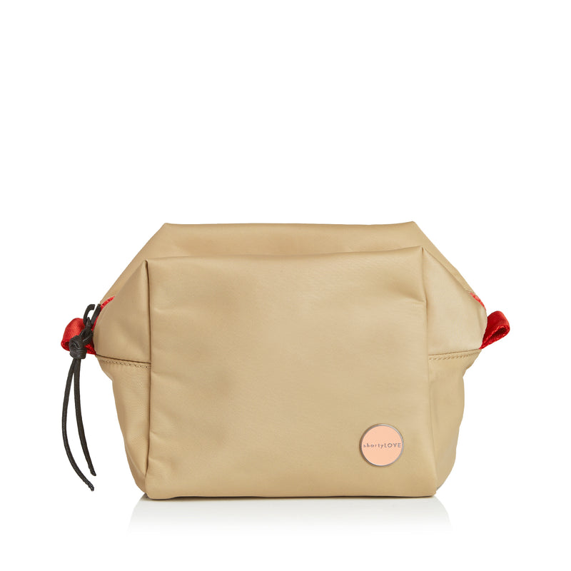 meet stevie, our small makeup bag/travel kit packed with personality and eager to wing away with you on your next free-spirited adventure. hers is a classic-yet-quirky kind of beauty that mixes dopp kit-styling with a modern aesthetic and clever details. her plush, lightweight cube proportions are small and packable yet sizable enough to fit your travel-sized beauty regimen comfortably. pockets: a plus. messes: handled. her easy-going, water-resistant nylon twill cleans up with soap and water — the lining is coated for added wipeability. her chunky, high-quality, end-to-end vision zipper opens wide and — this is key — cannot rust when the inevitable spill happens. stevie tucks unobtrusively into your friday weekender, tillie tote or boxer backpack for overnight escapes on a whim, last-minute weekend getaways and well-planned vacations. shortyLOVE. zip up your cosmetic bewitchery and take flight.